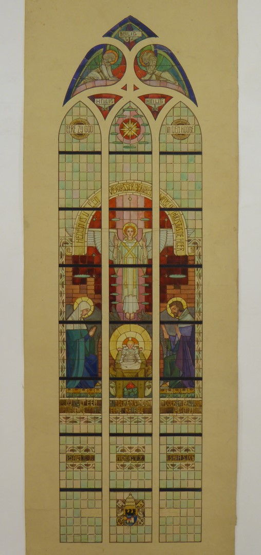 Ontwerp glasraam met de geboorte van Christus (Vianen)