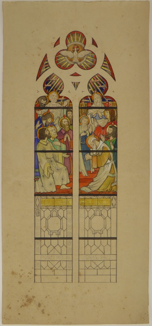 Ontwerp glasraam met voorstelling van Pinksteren (Wolvega ?)