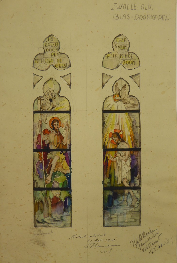 Ontwerp twee glasramen met de doop van Christus (Zwolle, O.L. Vrouwekerk)