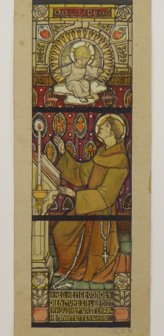 Ontwerp glasraam met visioen van Antonius (Azewijn, St. Mattheuskerk?)