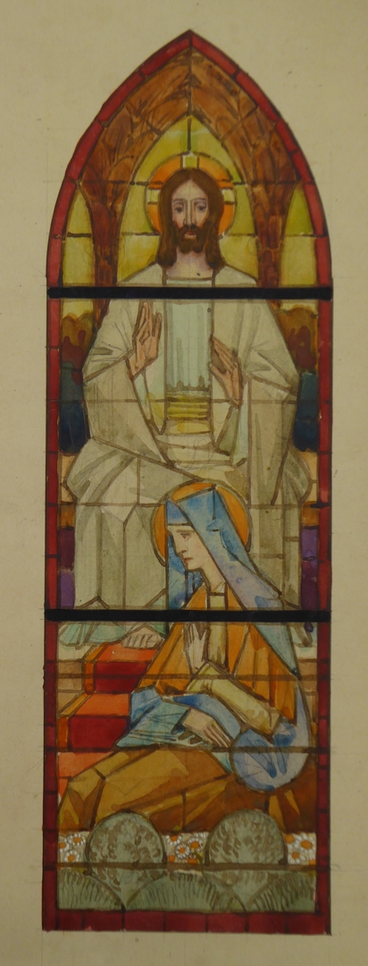 Ontwerp glasraam met Christus met een vrouwelijke heilige (Borne)