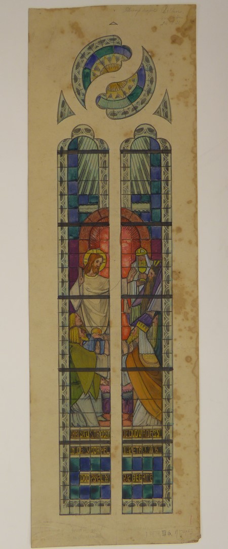 Ontwerp glasraam met Christus troost de oudvaders in het voorgeborchte (Delden, St. Blasiuskerk)