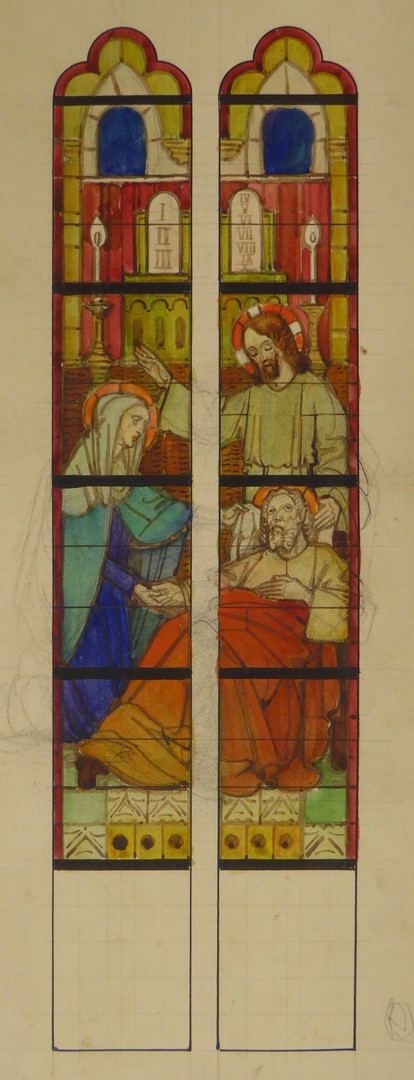 Ontwerp glasraam met het sterfbed van Jozef (Delden, St. Blasiuskerk)