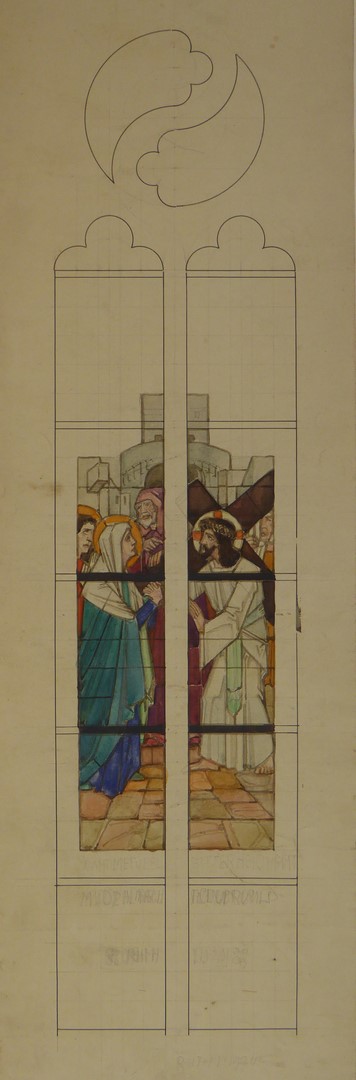 Ontwerp glasraam met Christus ontmoet Maria op de Kruisweg (Delden, St. Blasiuskerk)