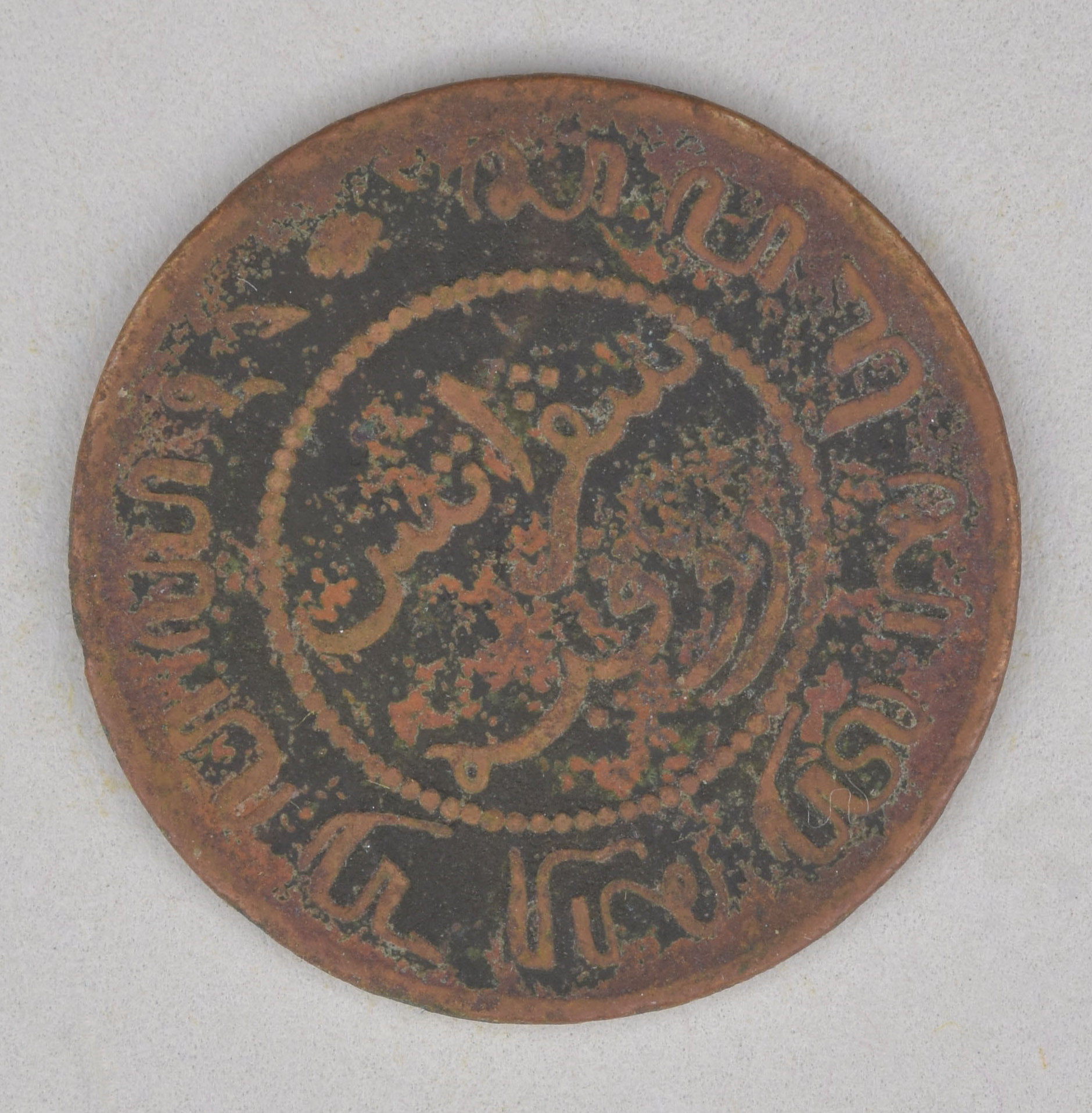 Natzar, munten als offergave behorend bij piring: 1 cent Nederlands-Indië, met Nederlands wapen tussen jaartal, kz. waarde-aanduiding in het Maleis en Javaans