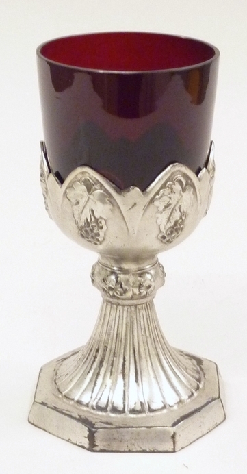 Lampje voor huisaltaar, met bloemmotieven en druiventrossen, in de vorm van een wijnglas