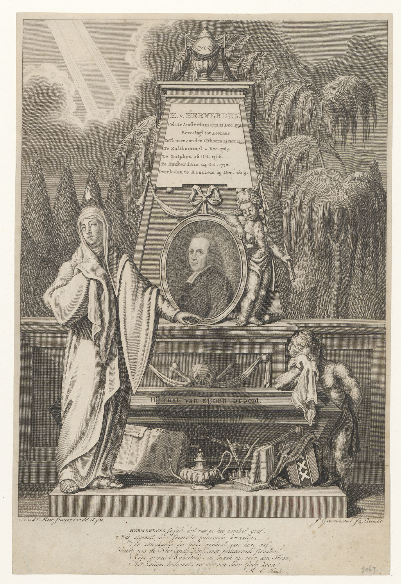 Grafmonument met portret van Henricus van Herwerden (1731-1805), predikant te Zaltbommel, Thamen, Zutphen, Amsterdam