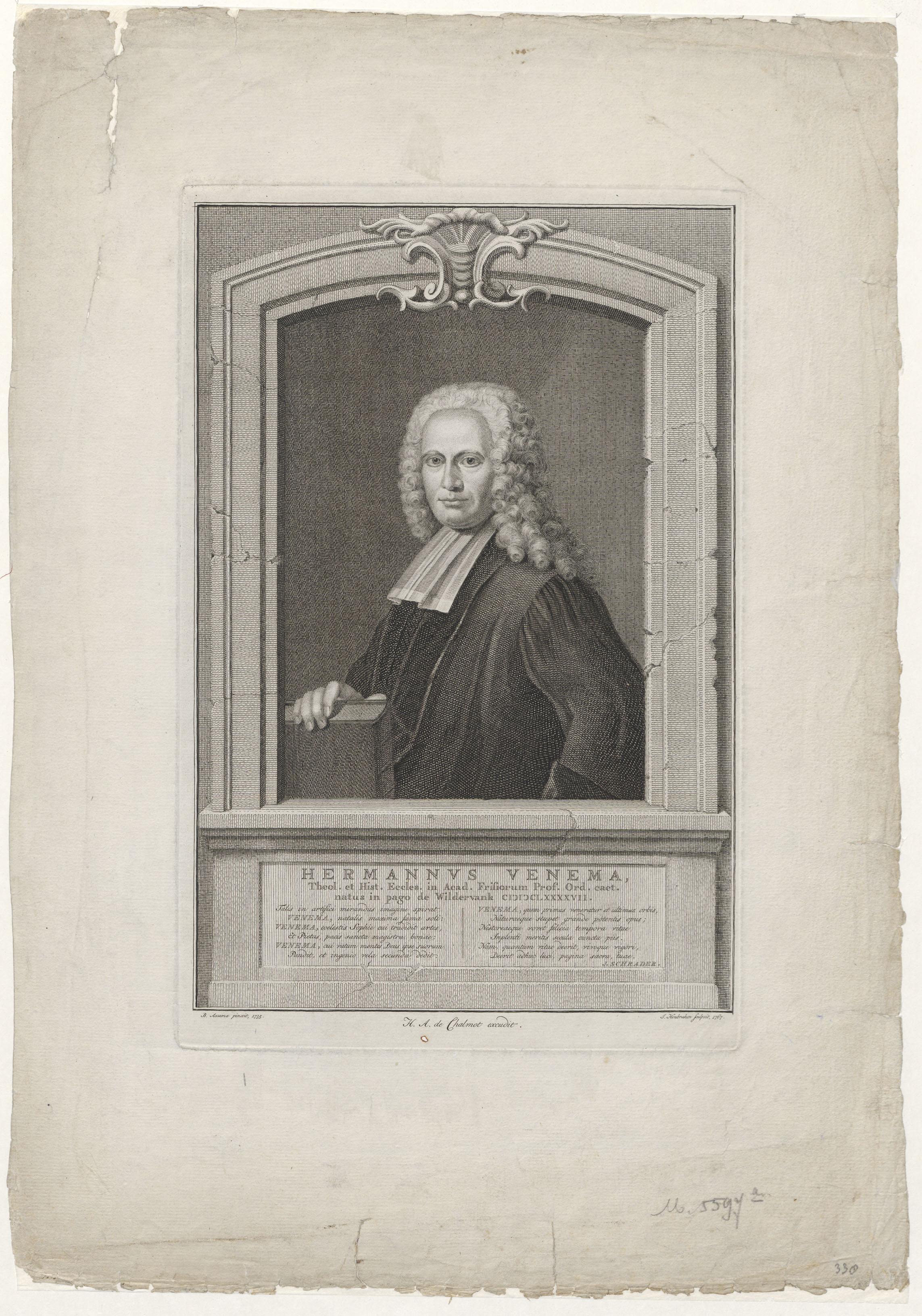 Portret van Hermannus Venema (1697-1787), hoogleraar theologie en kerkgeschiedenis Franeker