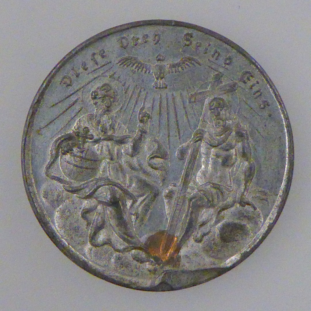 Penning (een van zeven) met H. Drie-eenheid, kz. met "Ich glaub ..."