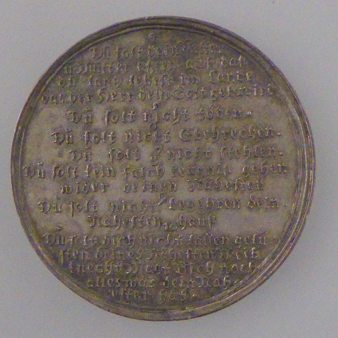 Penning met 10 geboden, "Gott redet alle diese Wort - Ich bin der Herr ...", kz. gebod 4 t/m 10