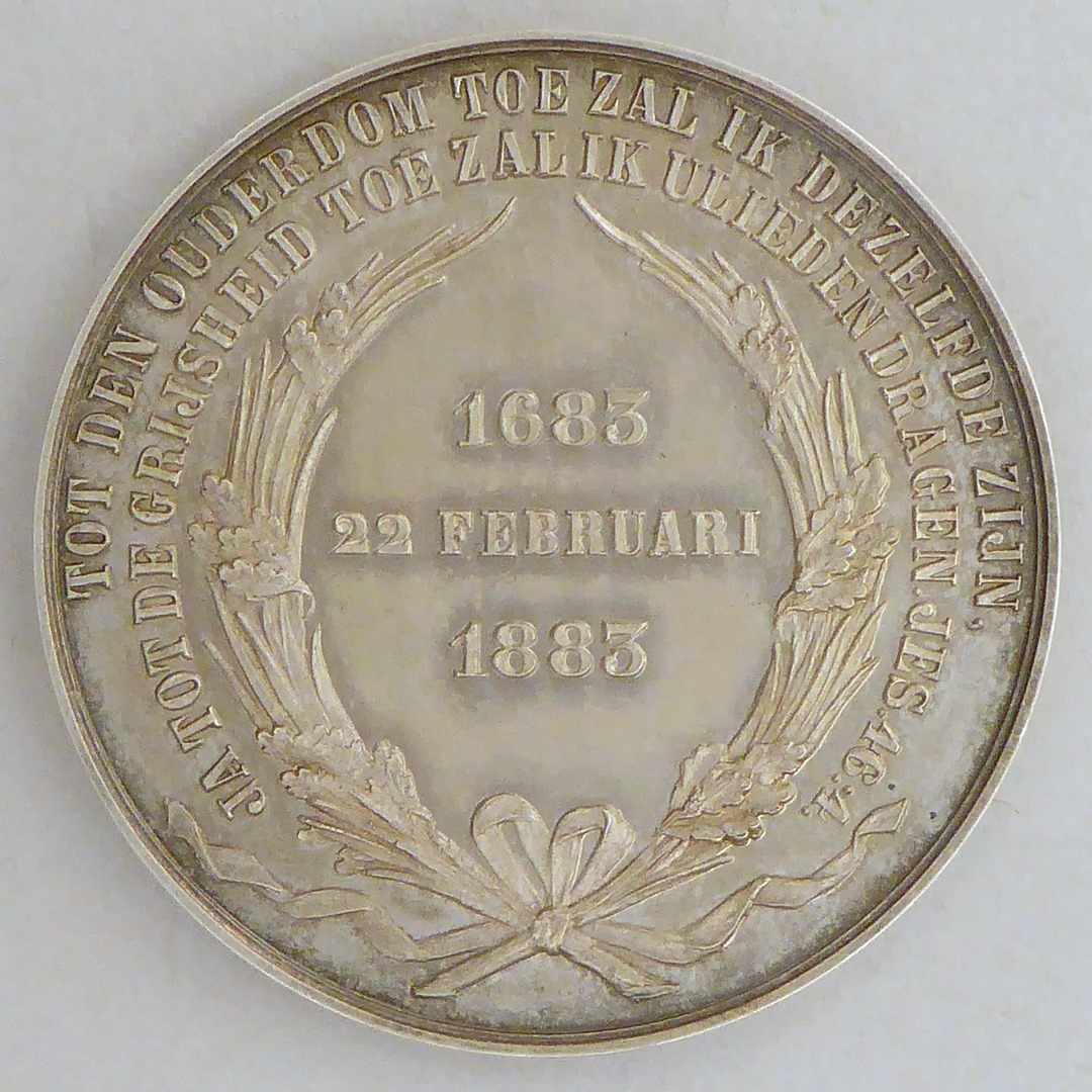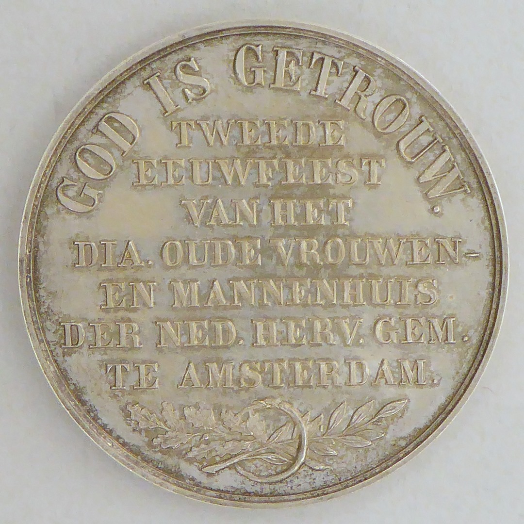 Penning diakonie met "1683 1883", kz. "Tweede eeuwfeest ... Dia. Oude Vrouwen- en ... Amsterdam"