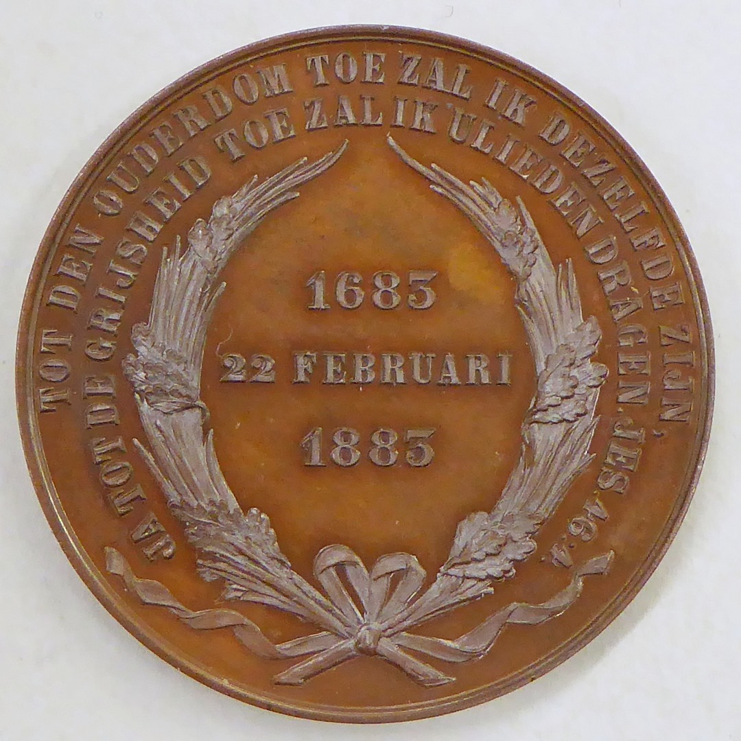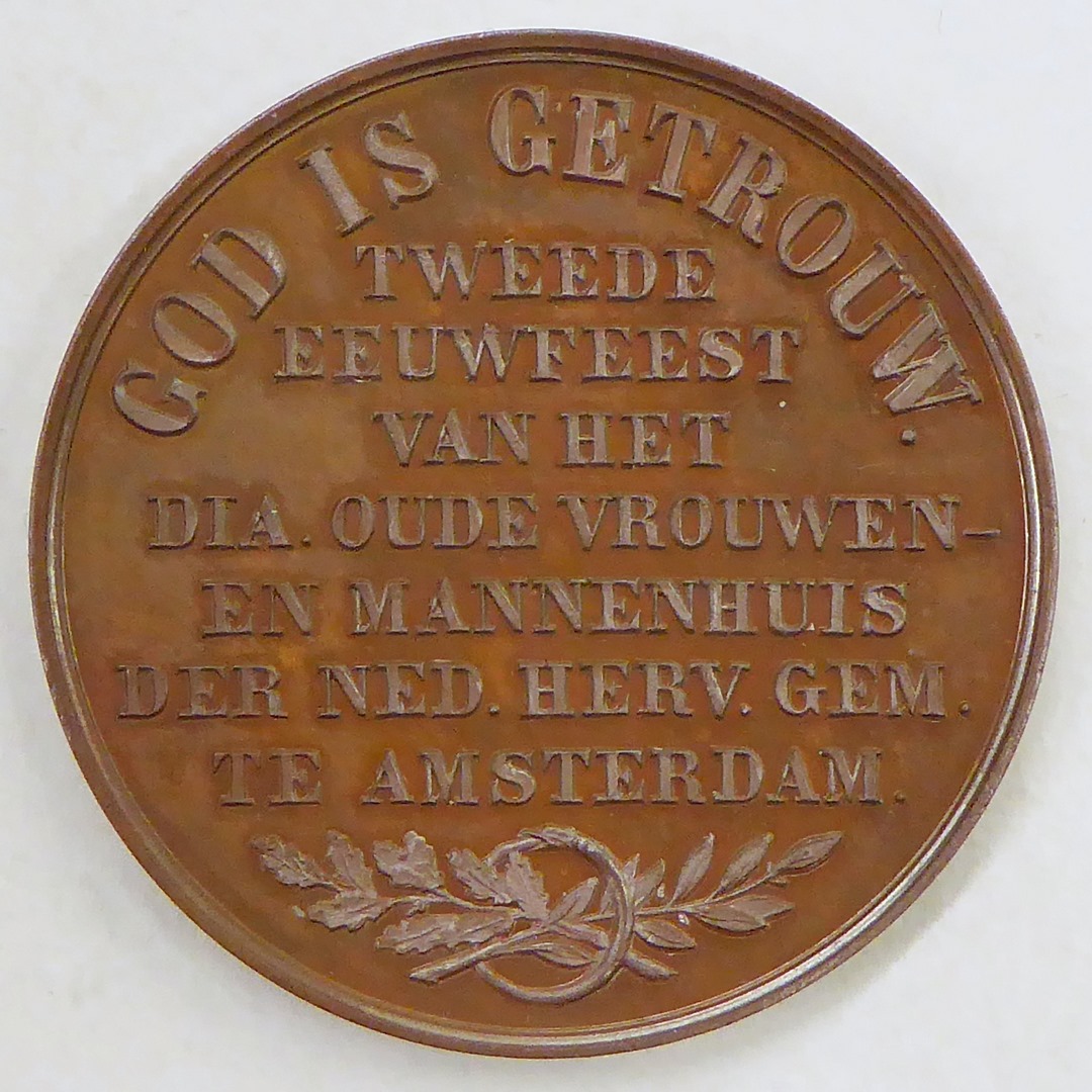 Penning diakonie met "1683 1883", kz. "Tweede eeuwfeest ... Dia. Oude Vrouwen- en ... Amsterdam"
