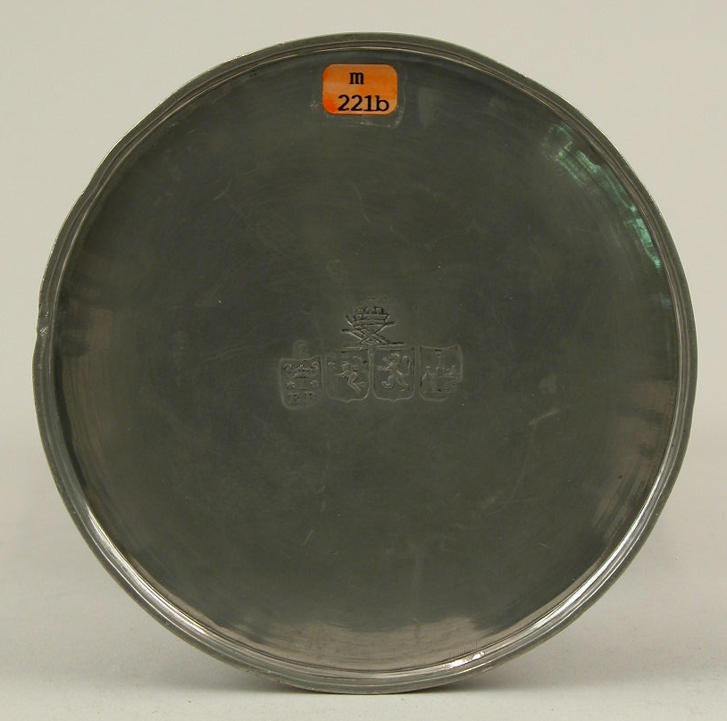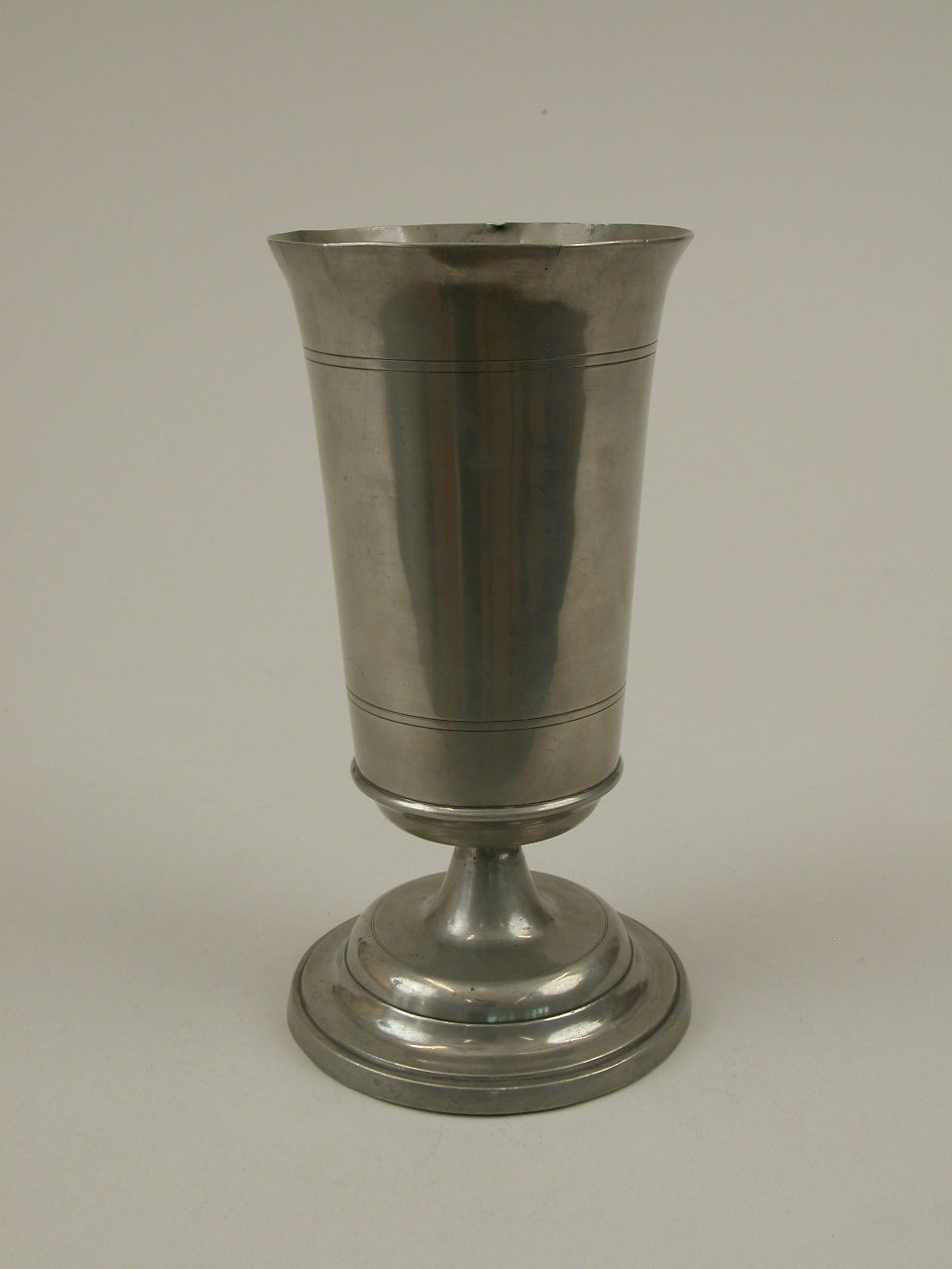 Avondmaalsbeker op voet met vier gegraveerde lijnen op kelk