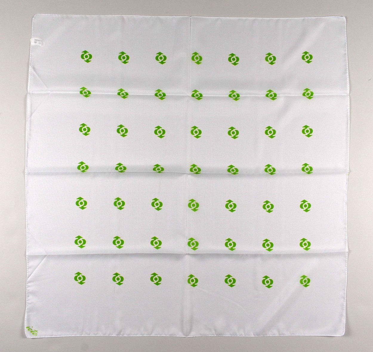 Witte damessjaal met in één hoek "ICTO" en met embleem van het ICTO; 2 pijlen, elk anders gericht