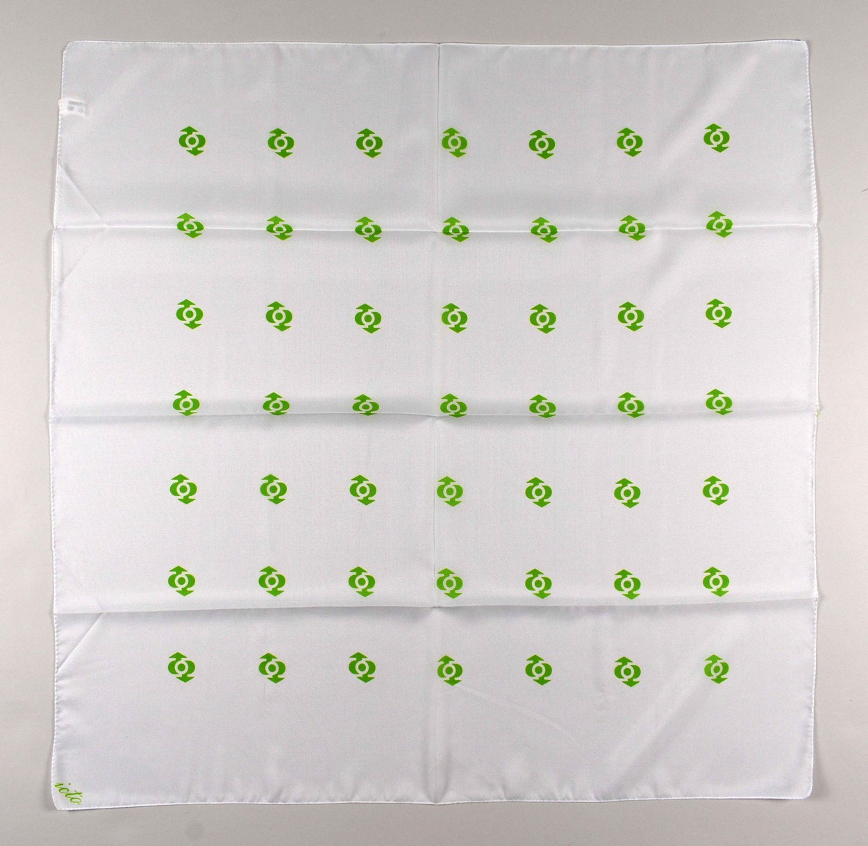 Witte damessjaal met in één hoek "ICTO" en met embleem van het ICTO; 2 pijlen, elk anders gericht