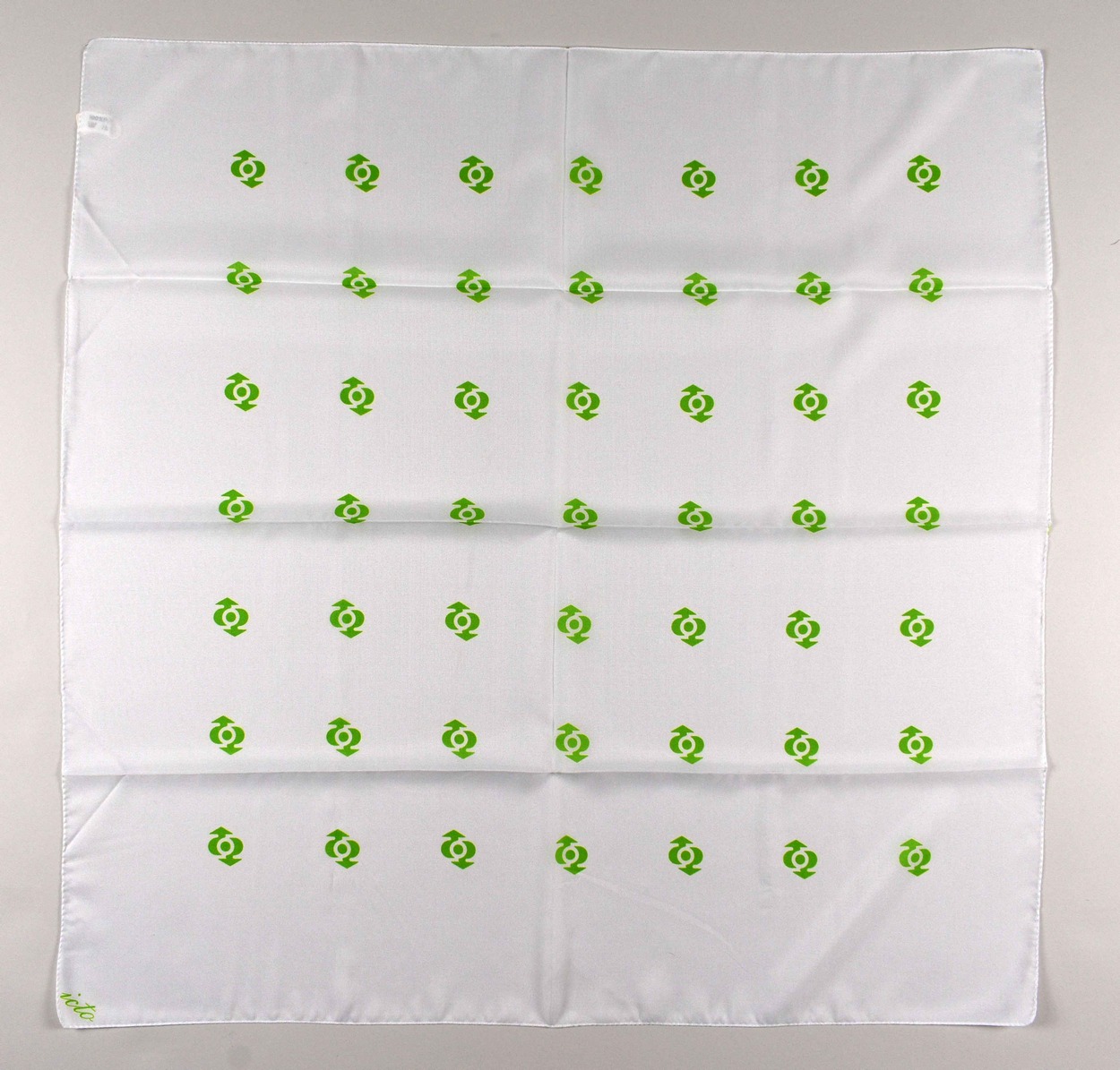 Witte damessjaal met in één hoek "ICTO" en met embleem van het ICTO; 2 pijlen, elk anders gericht