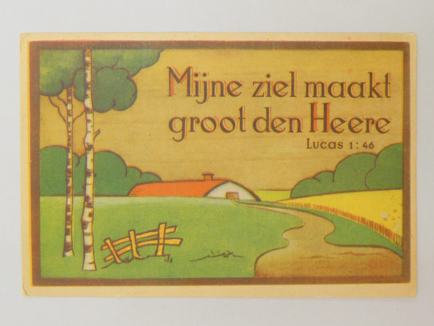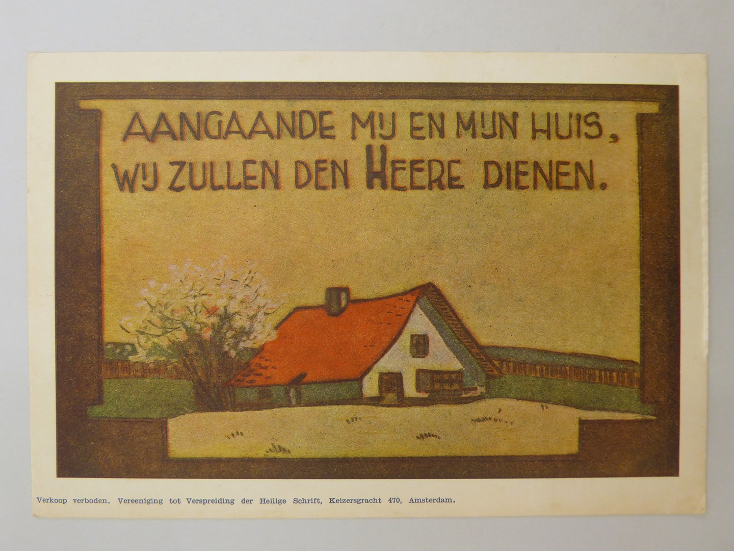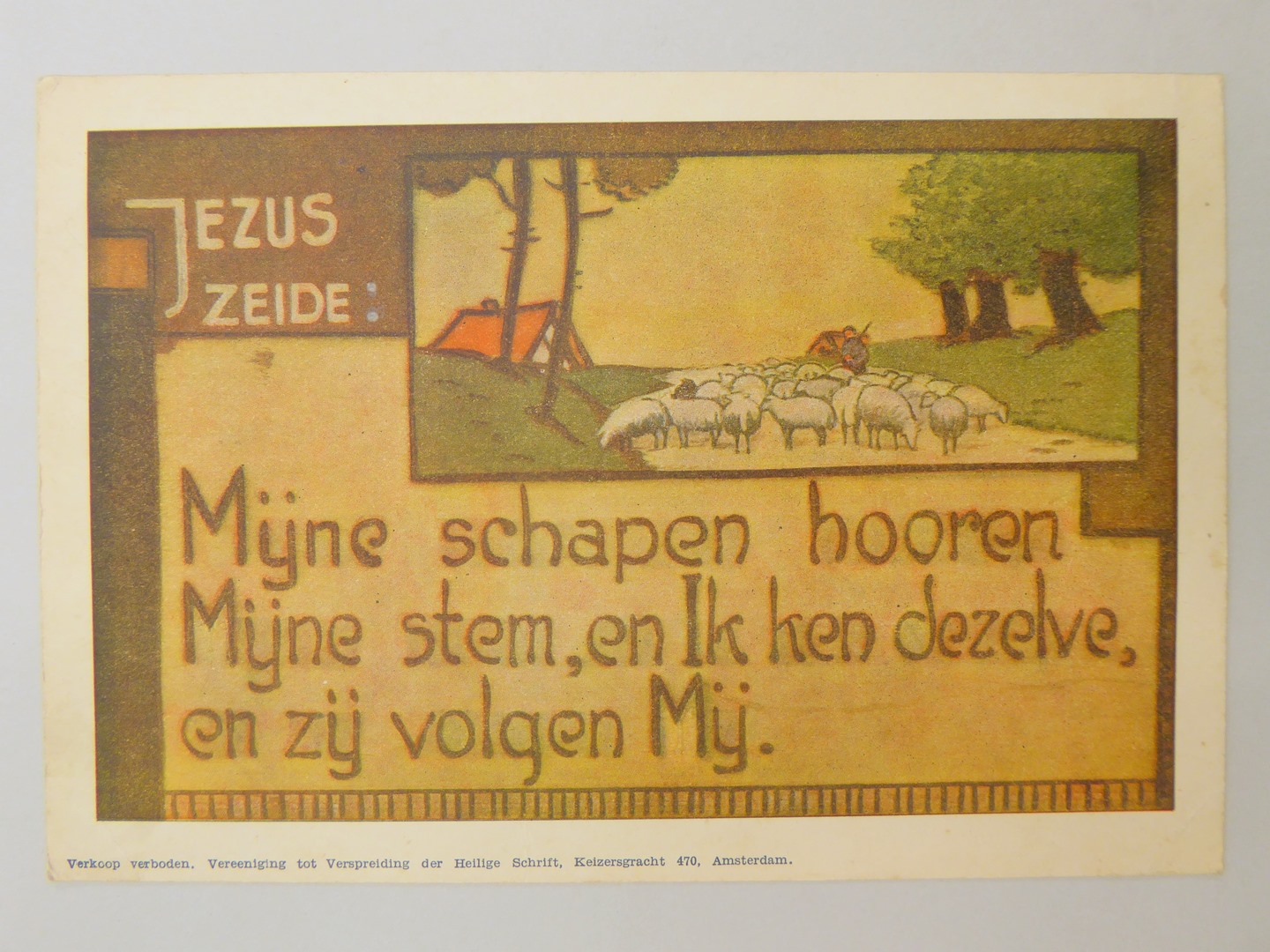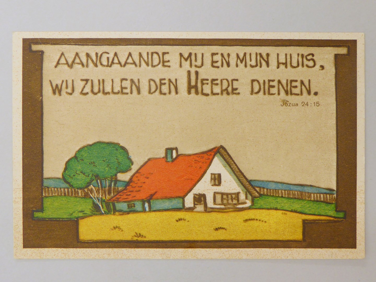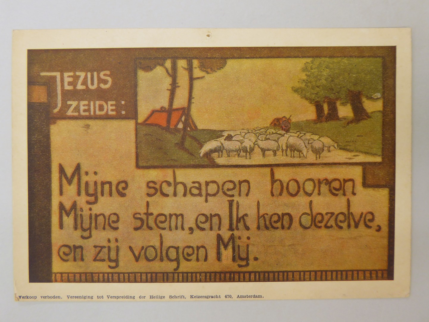 Kaarten (5 stuks) met (bijbel)tekst en afbeelding van huisje of schaapskudde