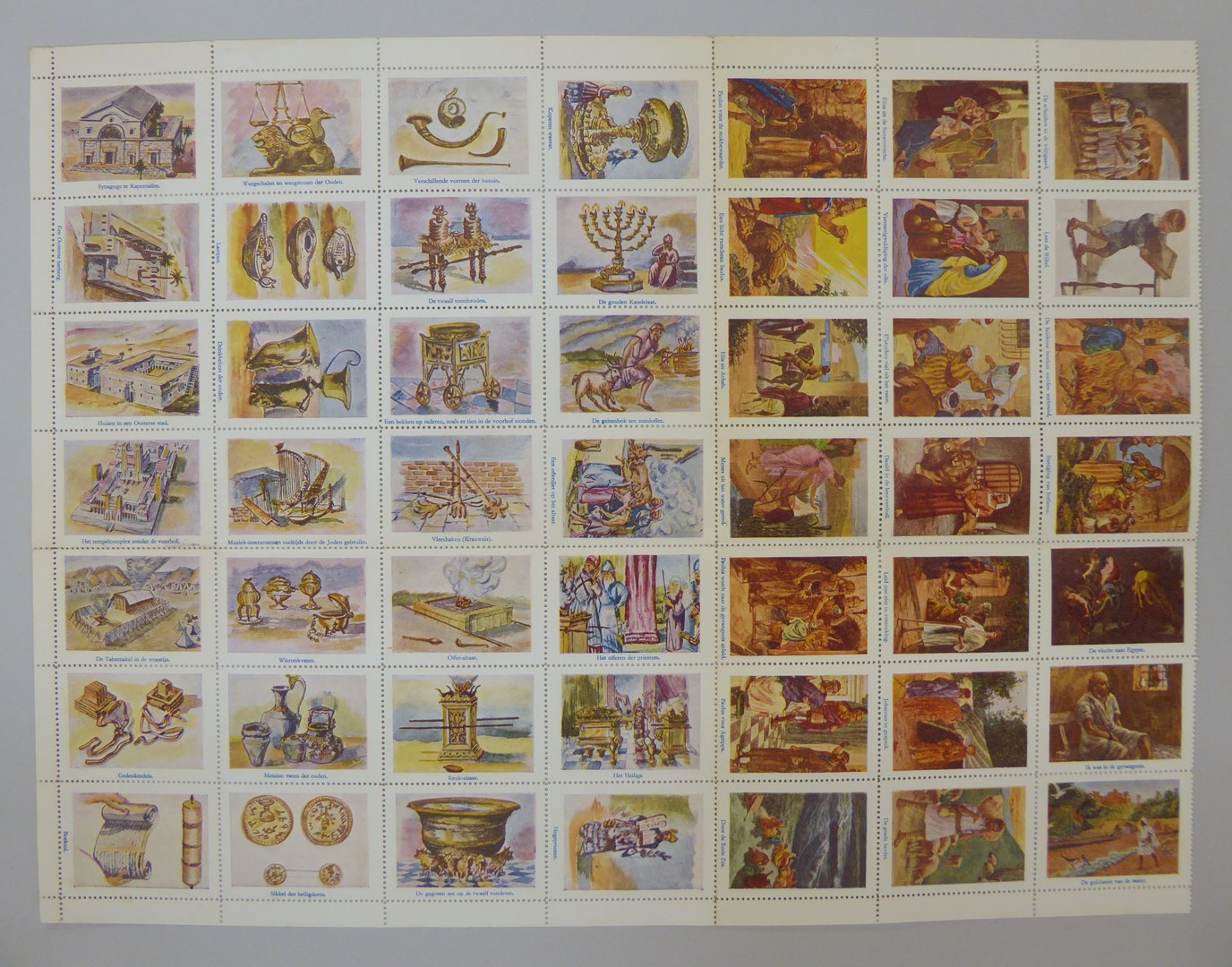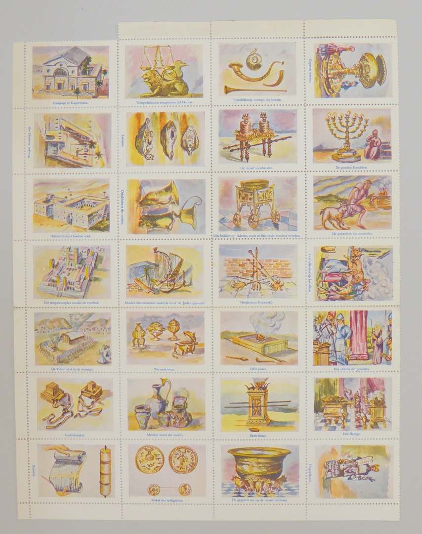 Vel (2 stuks) met beloningsplaatjes met scènes en liturgische voorwerpen uit het O.T.