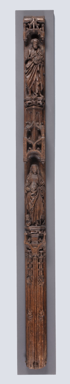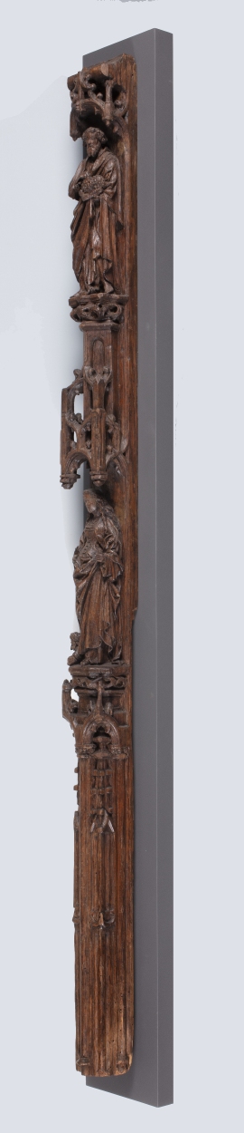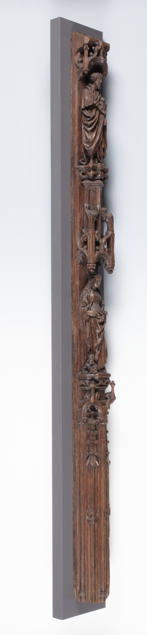 Deurnaald met Johannes de Doper en Catharina van Alexandrië, elk op een console onder een baldakijn