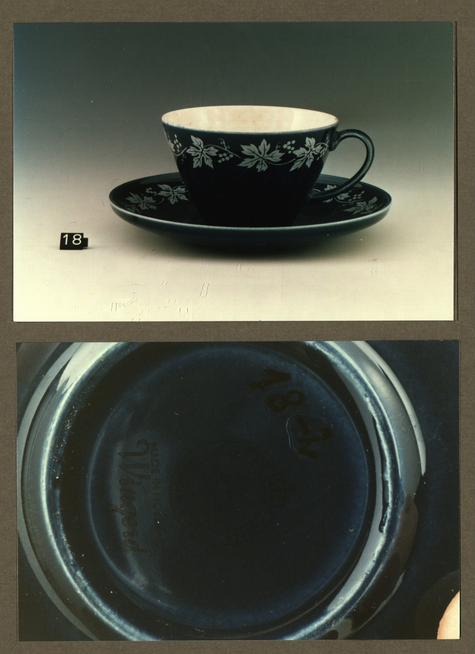 Kop en schotel, model Faenza met decor Witte Wingerd