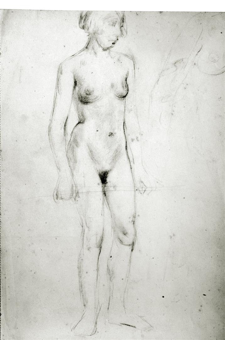 Studie van een staand vrouwelijk naakt.