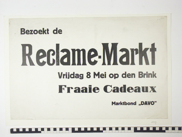 Bezoekt de Reclame-markt, vrijdag 8 mei op den Brink Fraaie cadeaux Marktbond DAVO