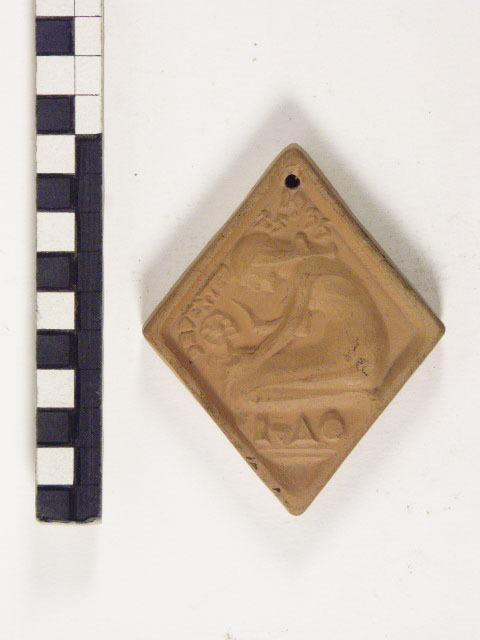 Twee Plaquettes of tegel voor 10 jaar I.V.A.O. Instituut Voor Arbeids Ontwikkeling 1925-1935, een ronde plaquette met een staande krijger bij een schild met daarop SDAP staande op golven, bovenaan 1934.