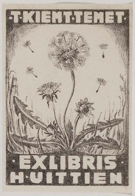 H. Uittien was verzetsman in de oorlog en leraar aan de Landsbouwschool te Deventer met voorstelling van paardebloem en opschrift:'T-Kiemt-Temet'