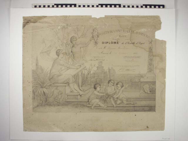 Diploma voor Deventer koek van M.Klopman Baerselman, 14 september 1885. Tentoonstelling in Antwerpen