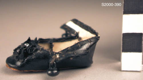 Binnenkant schoen wit. Kartonnen binnenzool. Zool van lichtbruin leer.