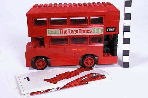 Een engelse dubbeldekker bus gemaakt van lego, nr 384