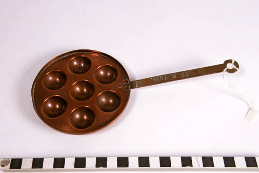 Poffertjespan met op de steel de tekst "TR. H. 1936. G.H.