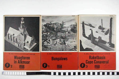 Drie bouwplaten van waagtoren in Alkmaar, bungalows, raketbasis cape Canaveral