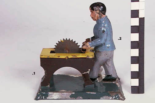 Staande man achter een zaagmachine