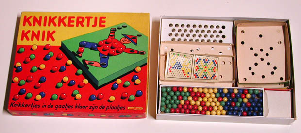 Knikkertje knik. Knikkertjes in de gaatjes en klaar zijn de plaatjes