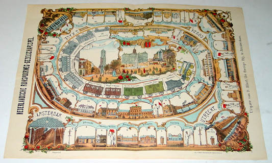 Heruigave van het oorspronkelijke spel uit 1874, Zat als bijlage bij het boek "Bloempjes der vreugd voor de Lieve Jeugd. Bijeengebracht door Leonard de Vries Amsterdam" , Bezige Bij. 1958