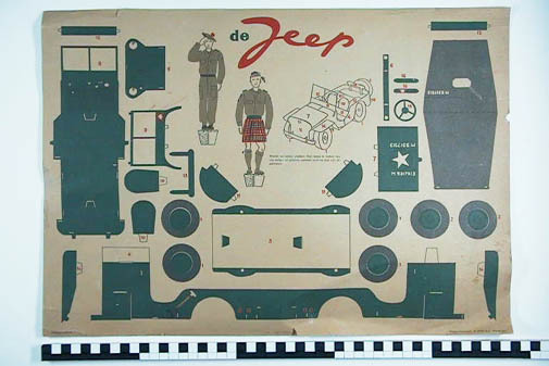 Twee bouwplaten van een jeep en van een tram