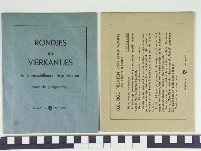 Plakplaatjes "Rondjes en vierkantjes in 6 verschillende frisse kleuren voor de plakpuzzles" en "Kleurige prenten voor kleine talenten om zelf te plakken". en plakpuzzles 2e serie