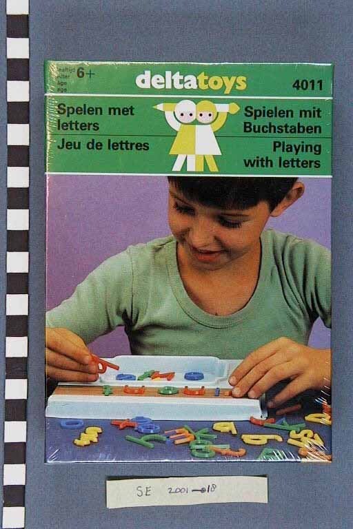 Doos van Delta Toys: Spelen met letters. Catalogusnr. is 4011. Voor 6 jaar en ouder.
