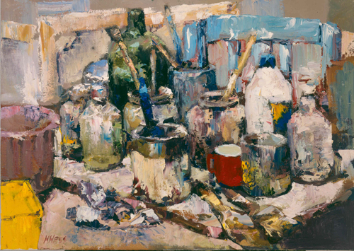 Zolderatelier - 1989, olieverf/doek, 70,5 x 80 cm, gesigneerd r.o.: H.Hess
