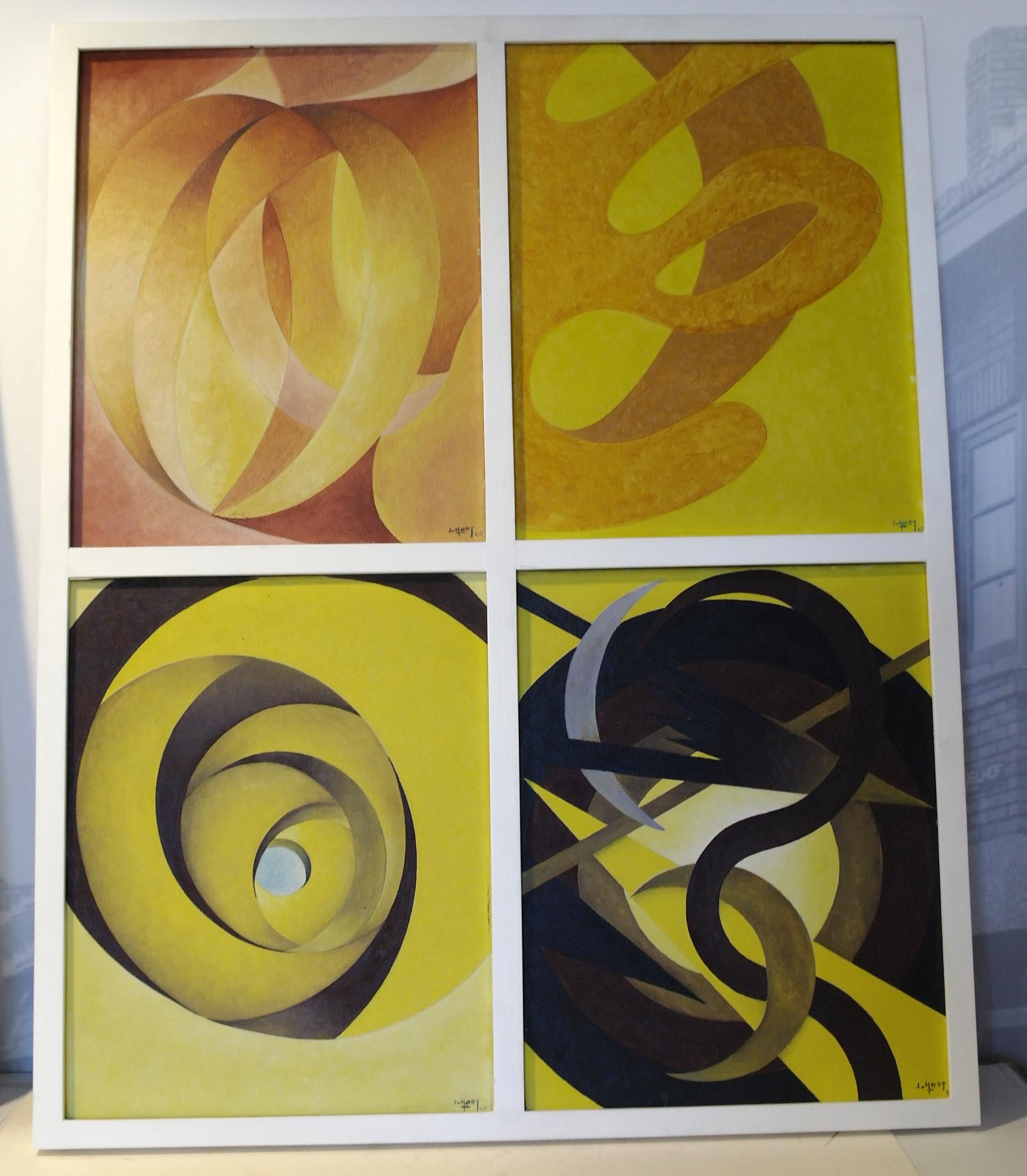 doek linksboven gesigneerd en gedateerd r.o.: JvHest '65 doek rechtsboven gesigneerd en gedateerd r.o.: JvHest '65 doek linksonder gesigneerd en gedateerd r.o.: JvHest '65 doek rechtsonder gesigneerd en gedateerd r.o.: JvHest '65 gemeente inv.nr: F 168 sticker op a.z.: Schilderij No 52 Zoeken naar oneindigheid olieverf op linnen 40 x 50 cm] Afmeting 40 x ...