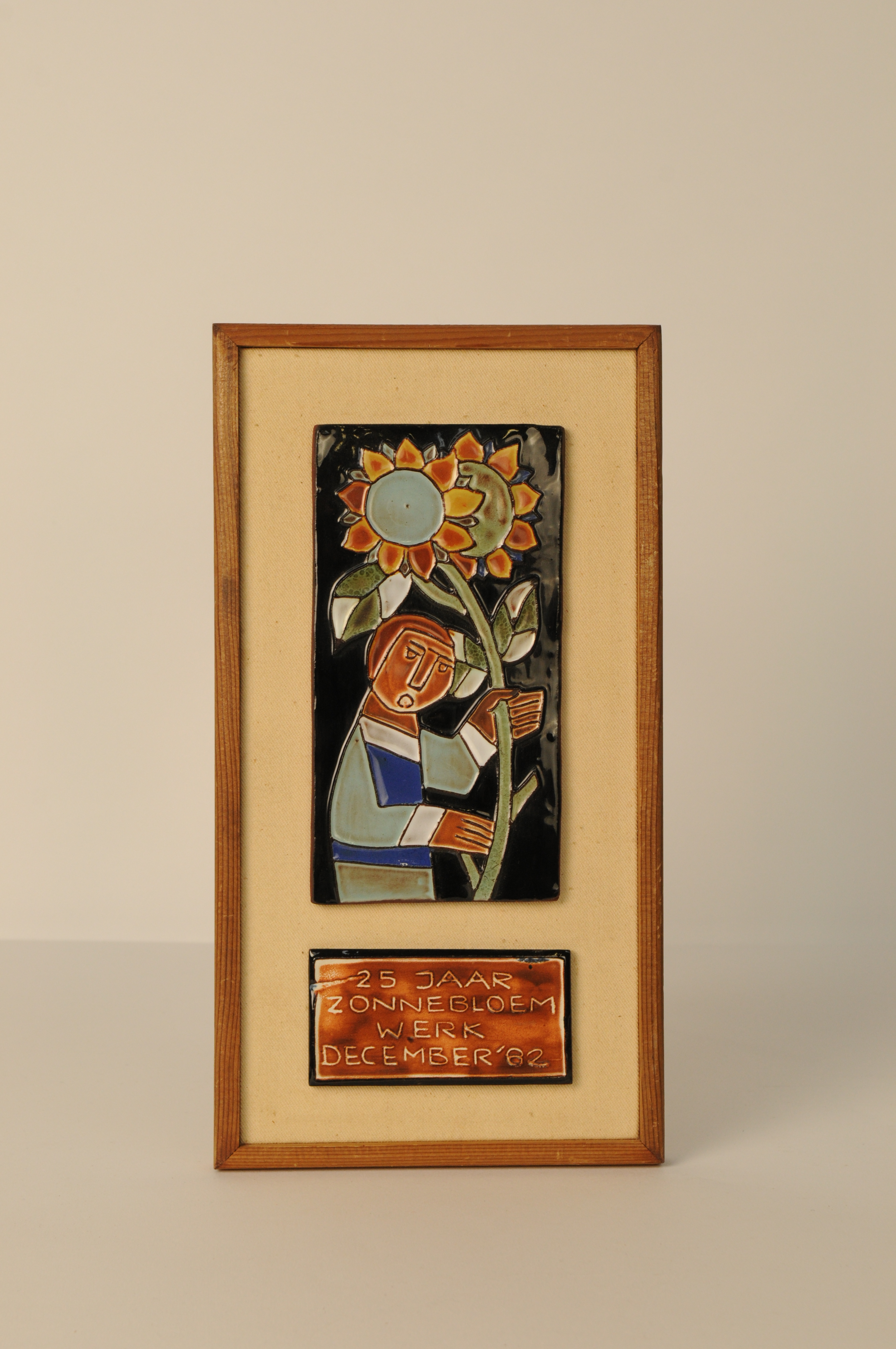 Plaquette 25 jaar de Zonnebloem - 1982, aardewerk/geglazuurd.