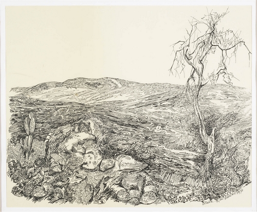 Aruba – 1971, oostindische inkt/papier, 350 x 430 mm, gelokaliseerd, gesigneerd en gedateerd r.o.: Aruba H. Jan Schouten 1971
