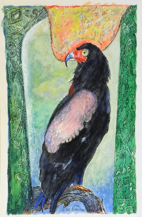 De Hakvogel – 1975, oostindische inkt, gouache en aquarel/papier, 365 x 235 mm, gedateerd en gesigneerd l.o.: 1975 H. JAN SCHOUTEN
