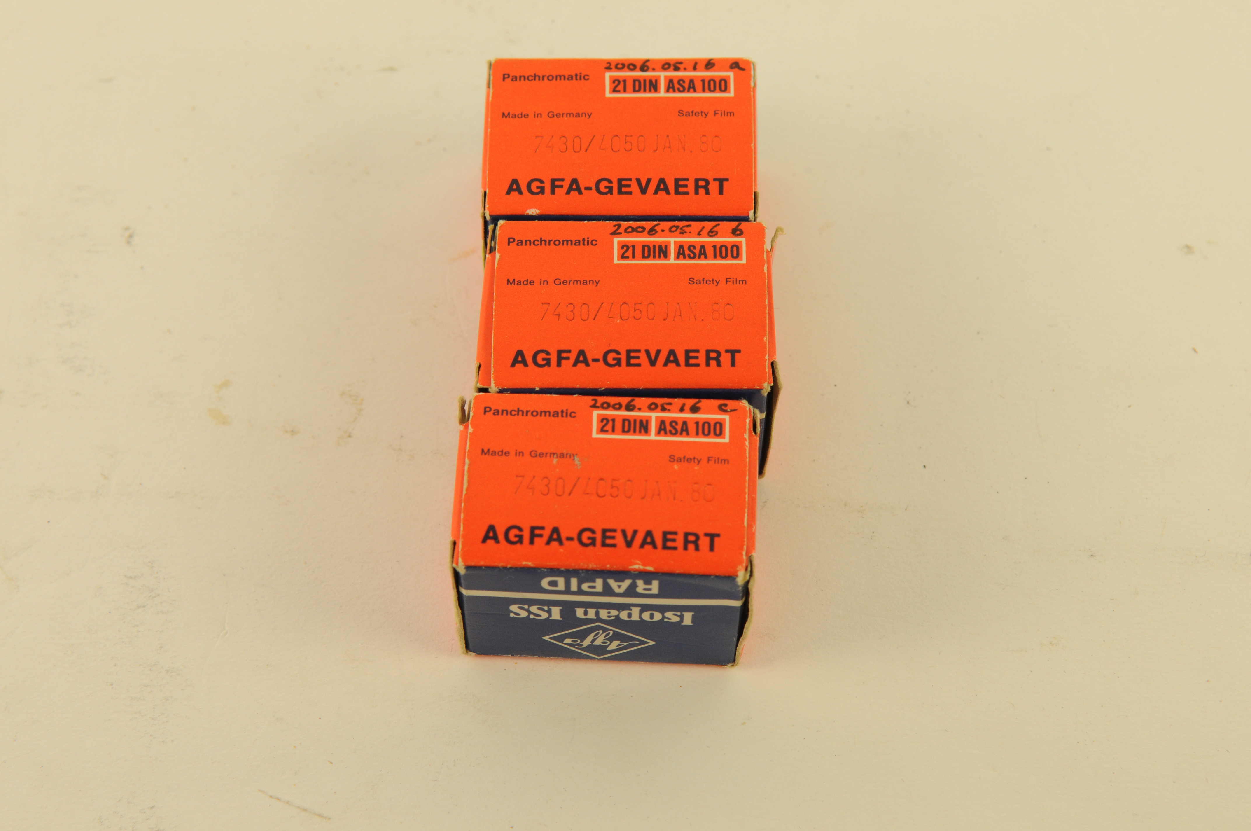 Doosje met fotorolletje Agfa Isopan Rapid 21 DIN 100 ASA, 3 x 3 x 4,4 cm