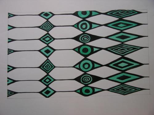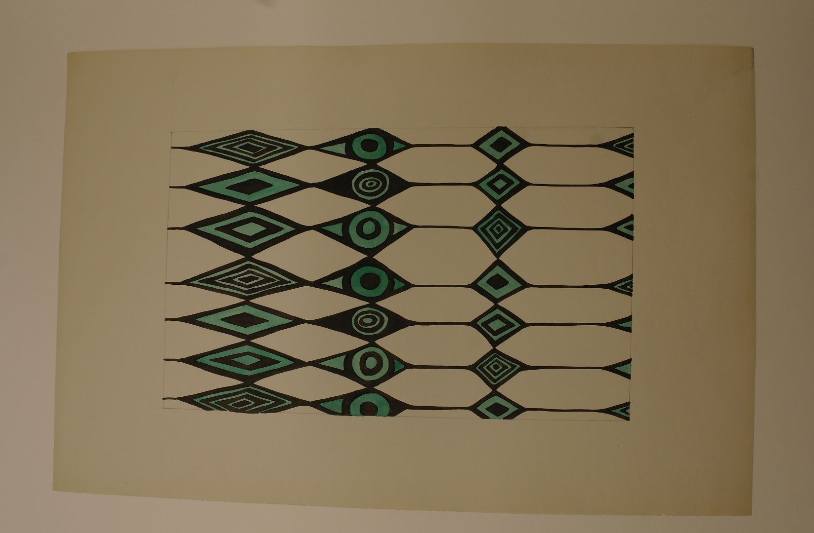 Textiel-ontwerp Pretil 12069, aquarel, O.I. inkt en potlood/papier, 330 x 200 mm