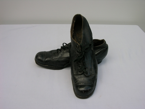 1 Paar zwarte lederen damesschoenen, veterschoenen, datering ca. 1910 - 1920