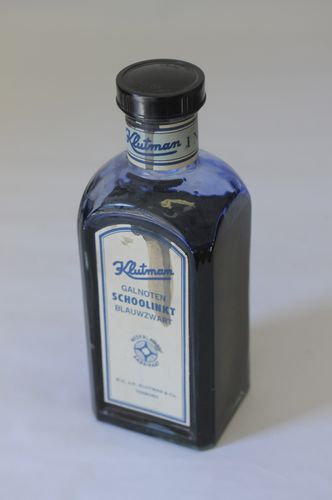 Fles met blauwzwarte galnoten kleurinkt van het merk Klutman