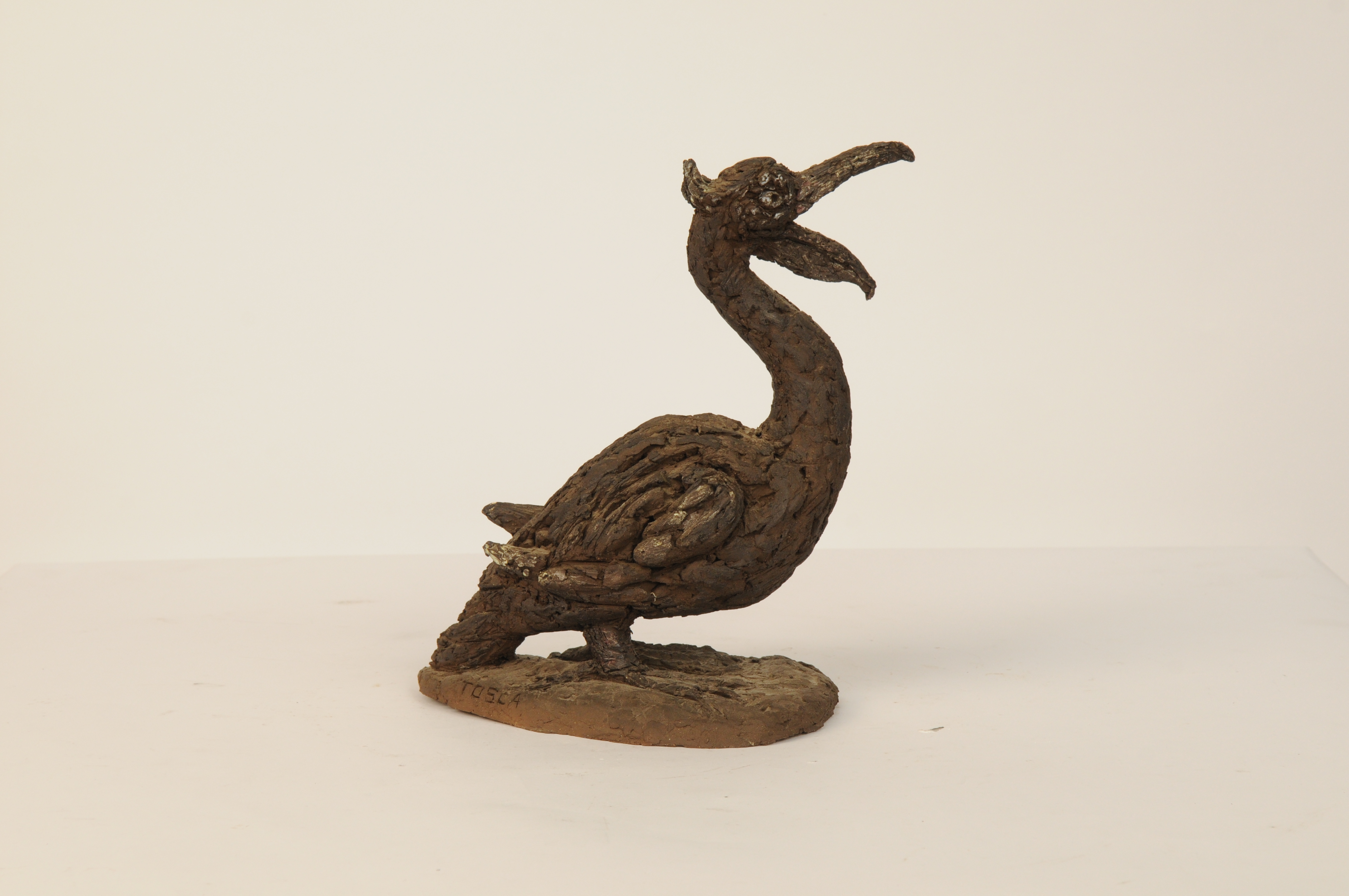 Pelikaan – z.j., gebakken klei, 26 x 22 x 13,5 cm, gesigneerd: TOSCA