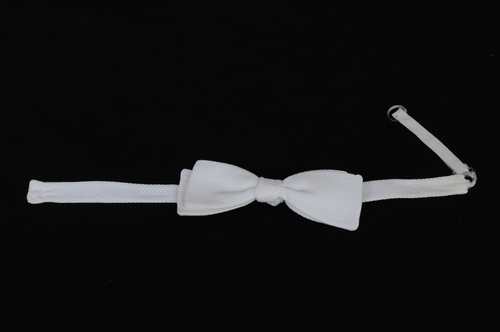 Dasstrikje van rokkostuum, materiaal: katoen piqué, kleur: wit, merk: Edsor Kronen type: FMT-FMT, voorgestrikte strik hoort bij rokkostuum inv.nr 2001.03.67 a+b